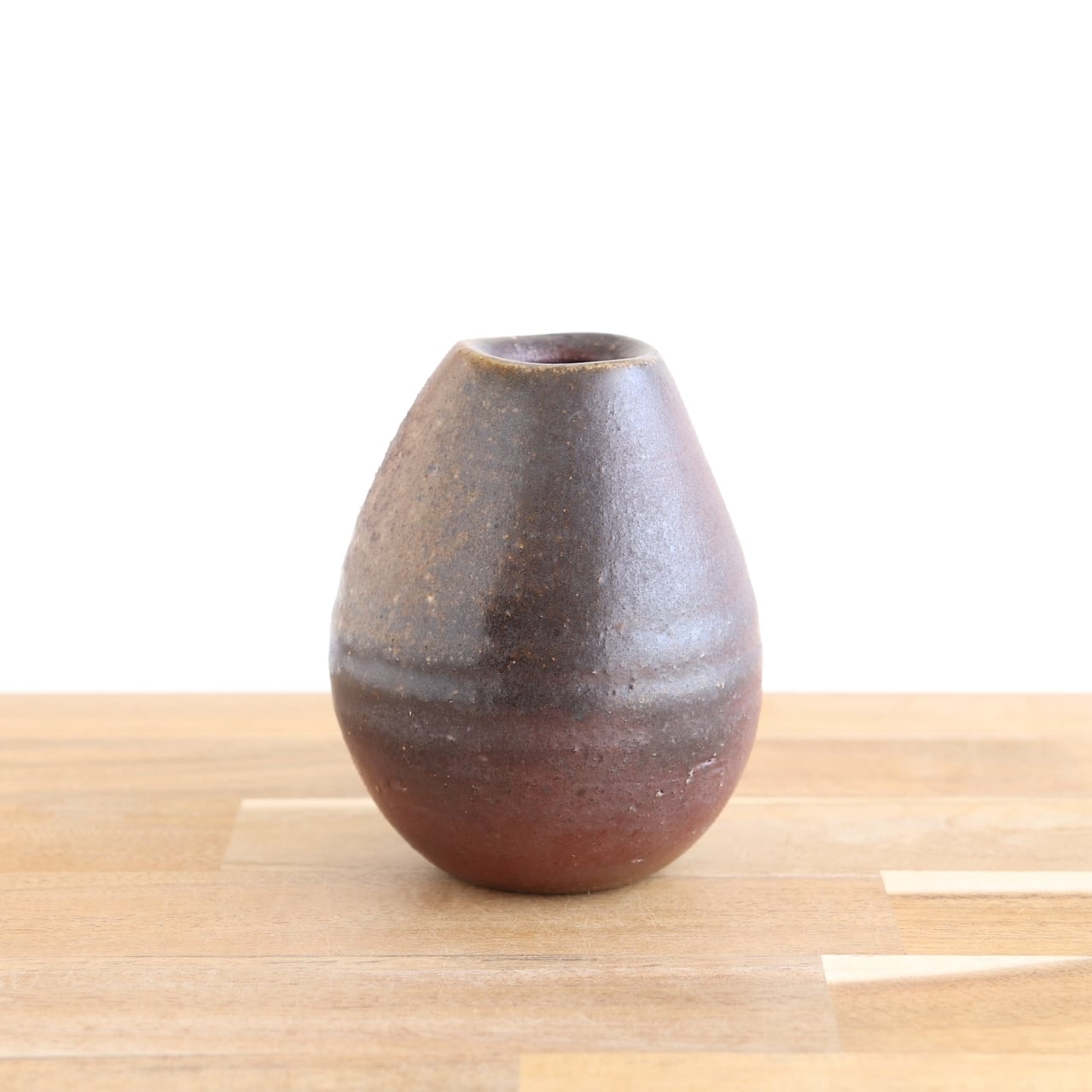 三角の形をした備前焼の一輪挿しです。