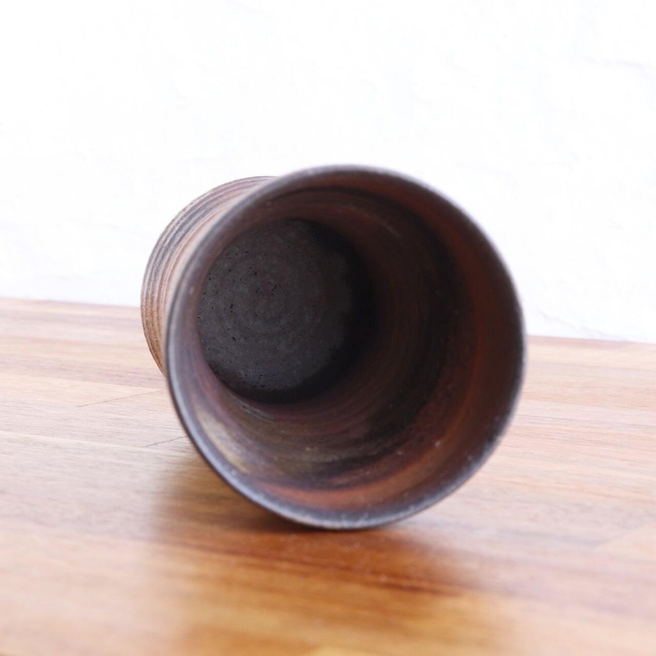 底から胴にかけて入った轆轤目とくびれのある形状が、持ちやすく手になじむデザインになっています。